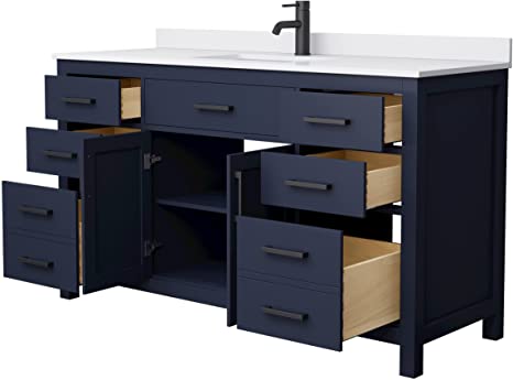 Beckett 60 Inch Single Bathroom Vanity in Dark Blue, White Cultured Marble Countertop, Undermount Square Sink, Matte Black Trim