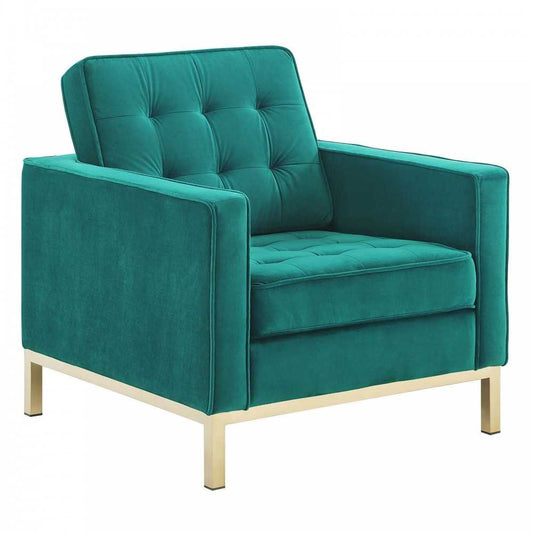 Loft Gold Stainless Steel Leg Performance Velvet 3 Piece Set, Gold Teal, EEI-4100-GLD-TEA-SET