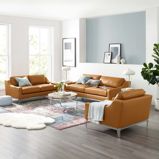 Idyll Tufted Upholstered Leather 3 Piece Set, Tan