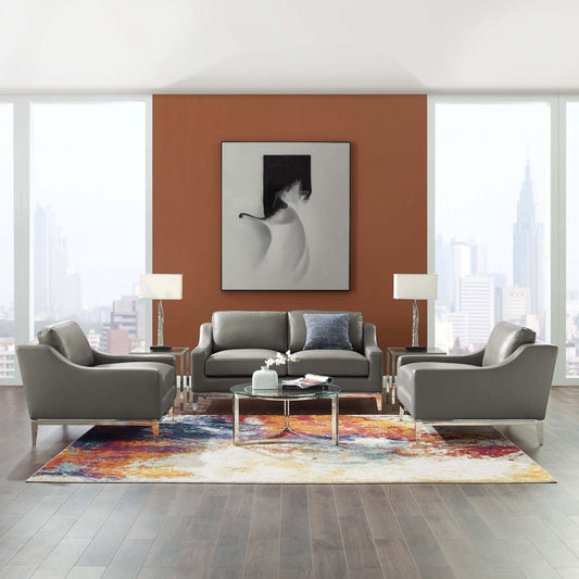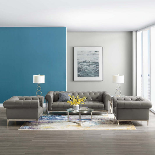 Idyll Tufted Upholstered Leather 3 Piece Set, Gray, EEI-4192-GRY-SET