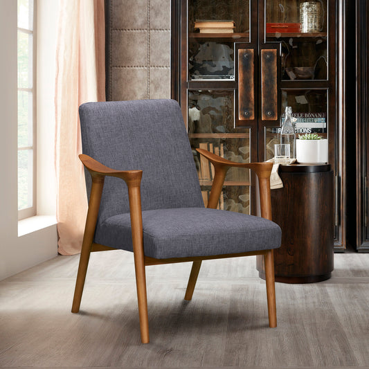 Nubia Mid-Century Accent Chair in Champagne Wood Finish and Dark Gray Fabric