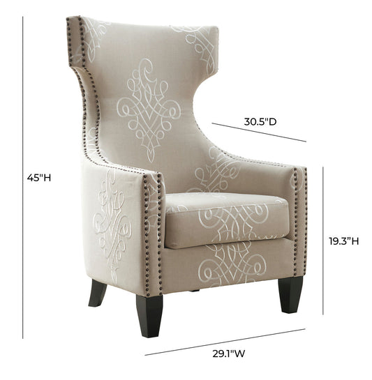 TOV Furniture Gramercy Embroidered Linen Wing Chair