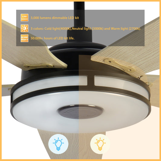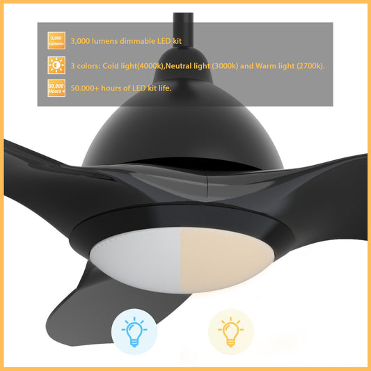 Calen 52 Inch 3-Blade Smart Ceiling Fan - Black