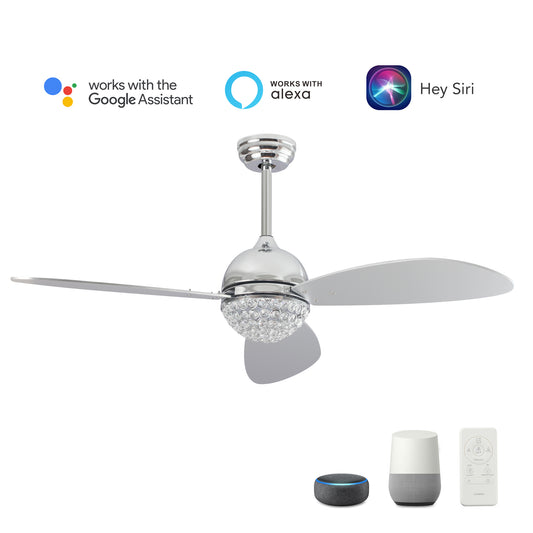 Coren 52 Inch 3-Blade Smart Ceiling Fan - Silver