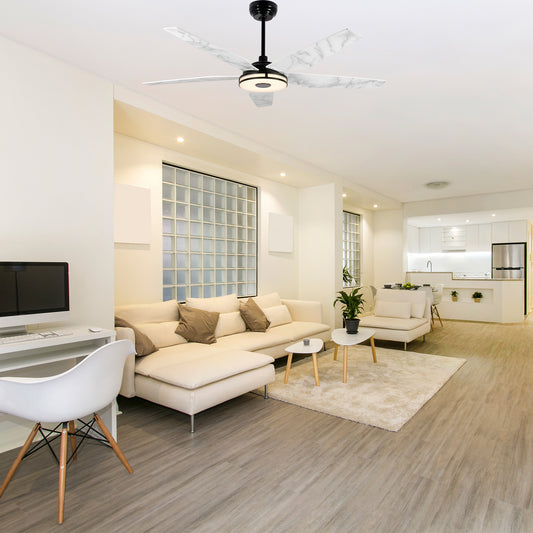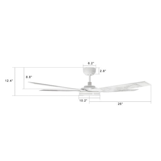 Elira 52-Inch Indoor/Outdoor Smart Ceiling Fan - Matte Black/White Marble