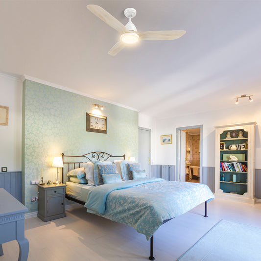Hoffen 52 Inch 3-Blade Smart Ceiling Fan - White/Light Wood