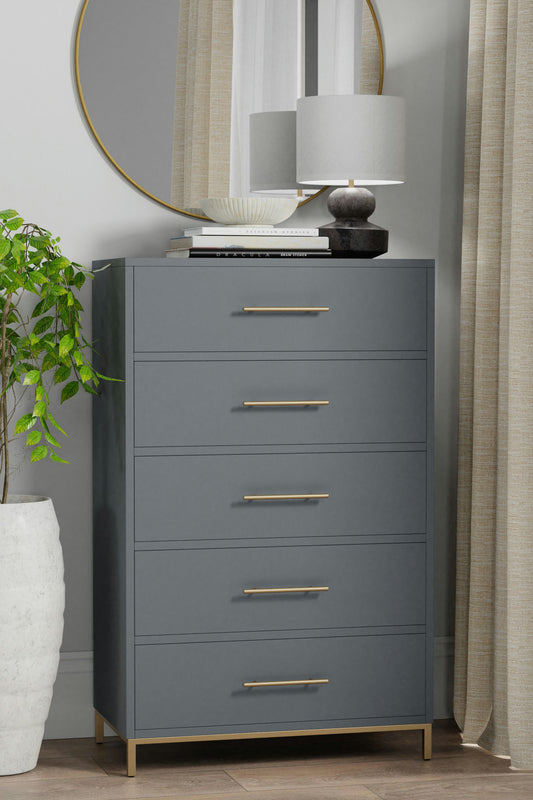 Alpine Furniture Madelyn Five Drawer Chest, Slate Gray
