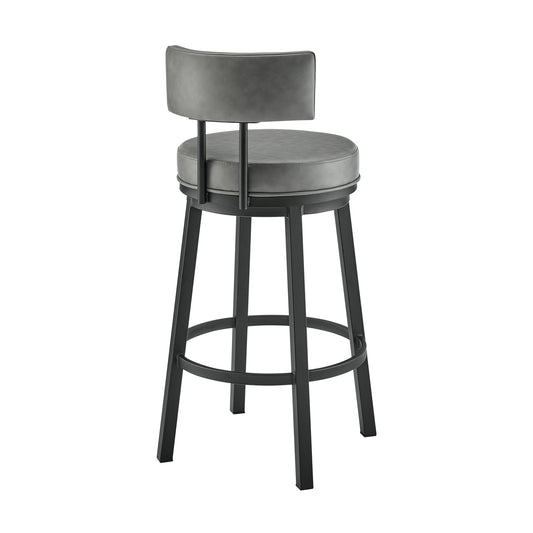 Dione 30" Bar Height Swivel Grey Faux Leather and Black Metal Bar Stool