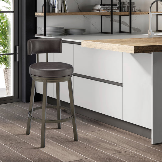 Dione 26" Counter Height Swivel Grey Faux Leather Bar Stool