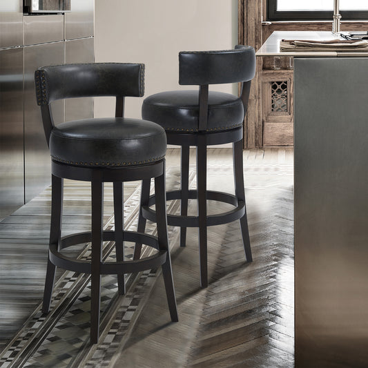 Corbin 30" Bar Height Swivel Onyx Faux Leather and Espresso Wood Bar Stool