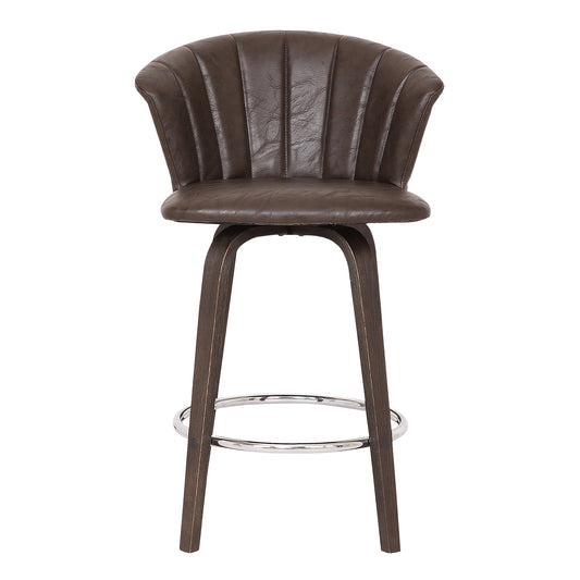 Crux 26" Swivel Counter Stool in Brown Faux Leather and Walnut Wood