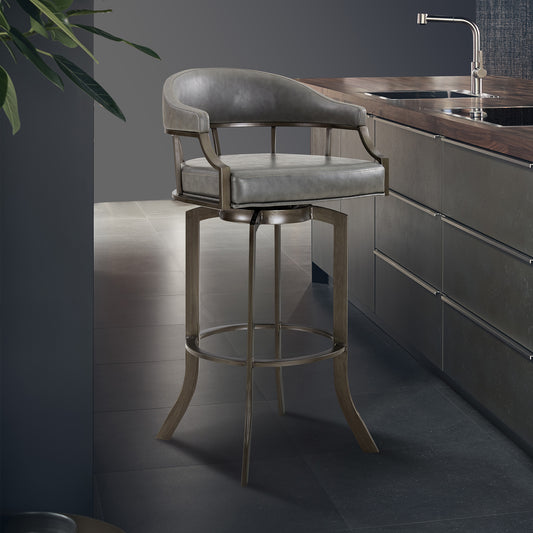 Edy Swivel 26" Mineral Finish and Gray Faux Leather Bar Stool