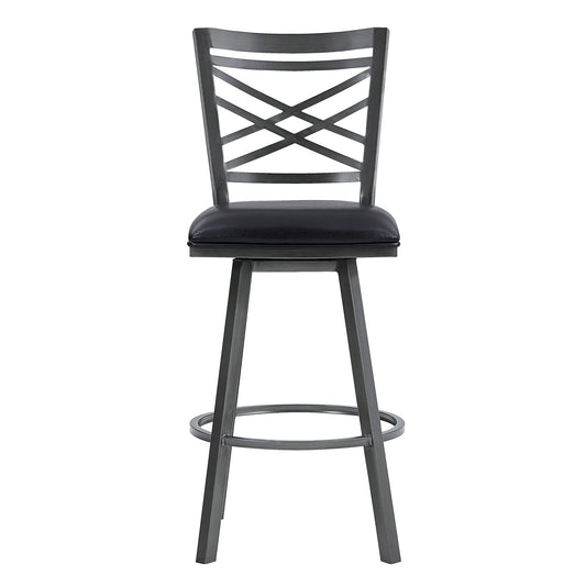 Edy Swivel 30" Mineral Finish and Black Faux Leather Bar Stool
