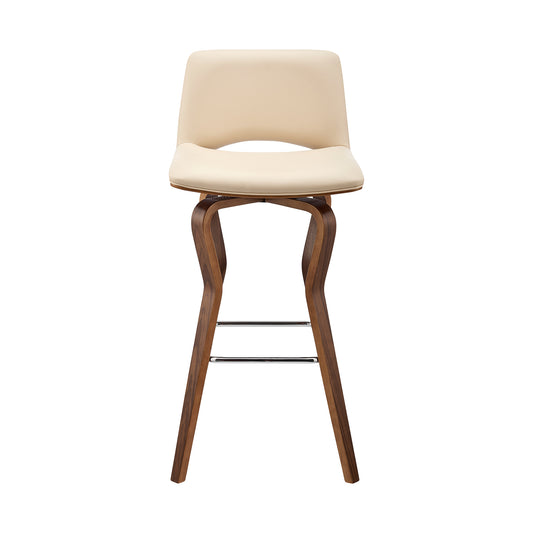 Gerty 26" Swivel Cream Faux Leather and Walnut Wood Bar Stool
