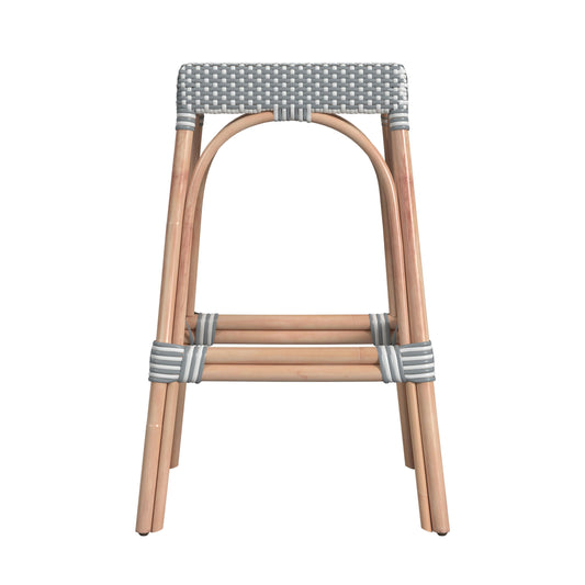 Robias Rectangular Rattan 30" Bar Stool, Gray and White Stripe