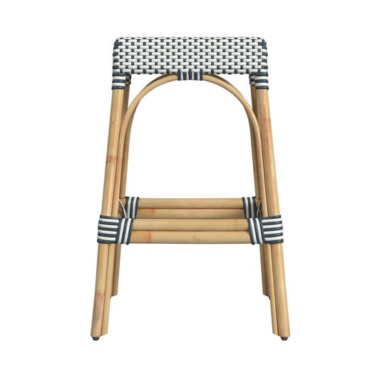 Robias Rectangular Rattan 30" Bar Stool, White and Navy Stripe