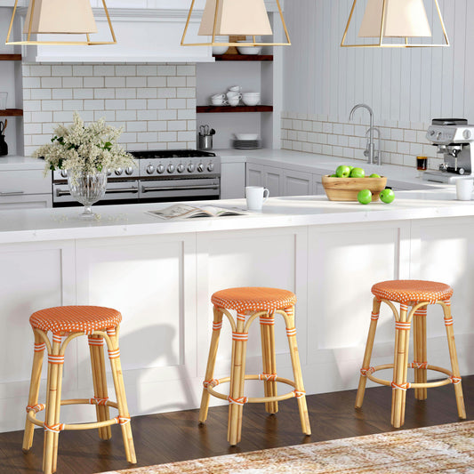 Tobias Rattan Round 24" Counter Stool, Orange and White Dot