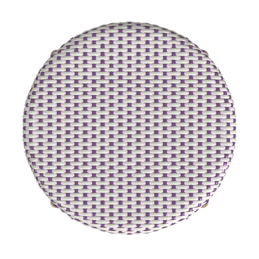Tobias Rattan Round 24" Counter Stool, White and Purple Dot