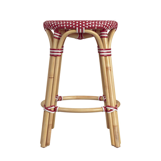 Tobias Rattan Round 24" Counter Stool, Red and White Dot