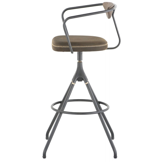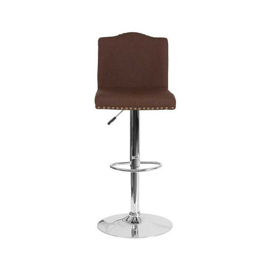 Ravello Contemporary Adjustable Height Barstool with Accent Nail Trim in Brown Fabric