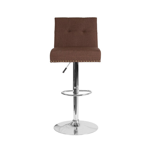 Bellagio Contemporary Adjustable Height Barstool with Accent Nail Trim in Brown Fabric