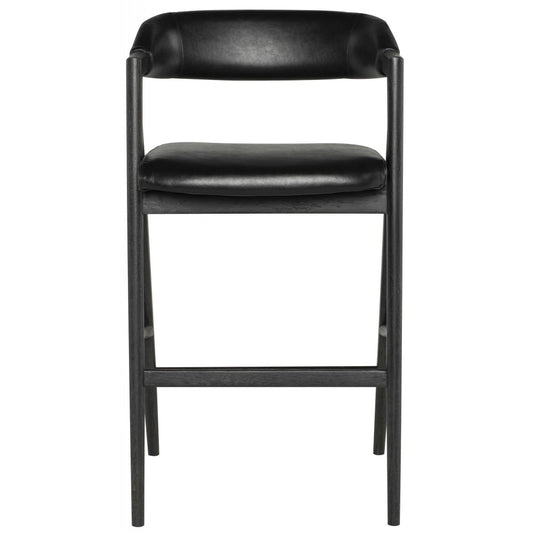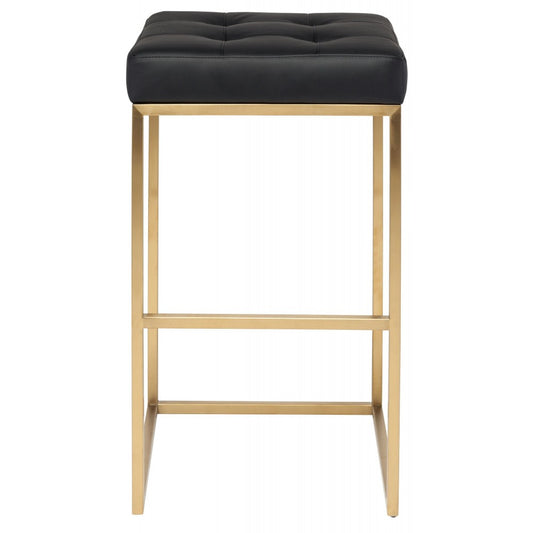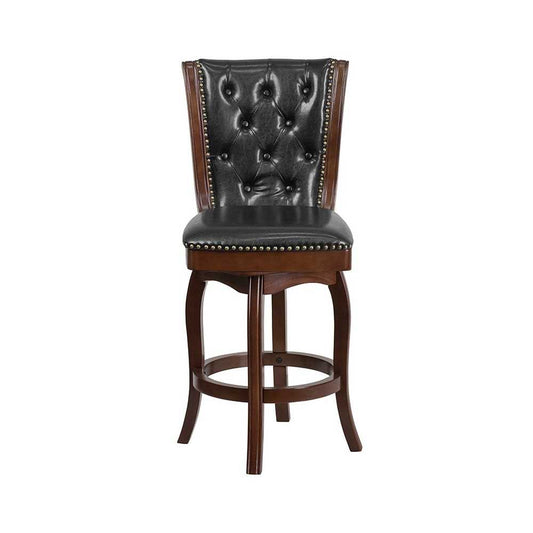 26'' High Cappuccino Wood Counter Height Stool with Button Tufted Back and Black LeatherSoft Swivel Seat