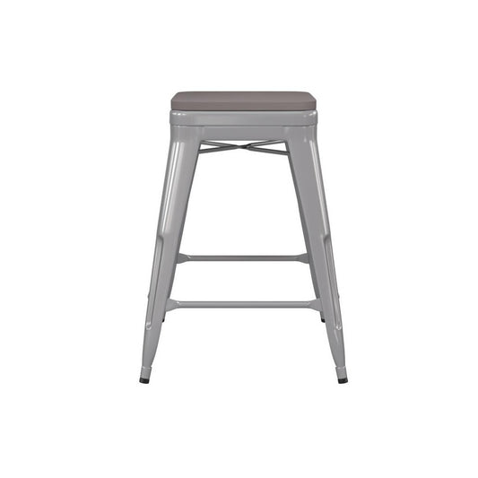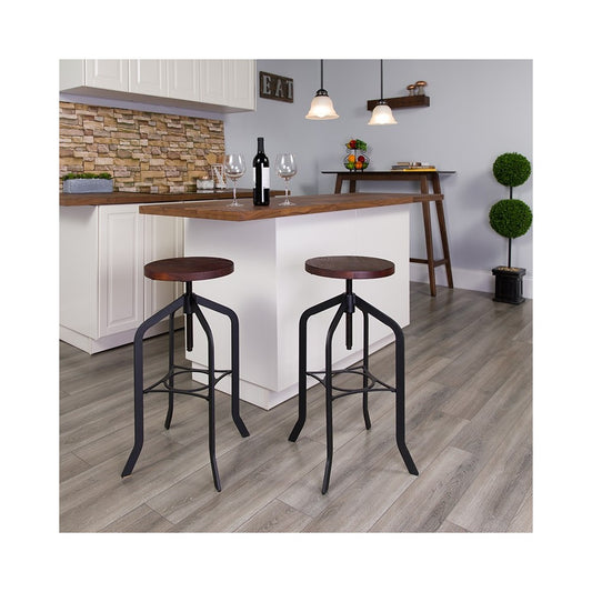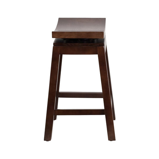 26'' High Saddle Seat Cappuccino Wood Counter Height Stool with Auto Swivel Seat Return