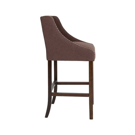 Carmel Series 30" High Transitional Tufted Walnut Barstool with Accent Nail Trim in Brown Fabric