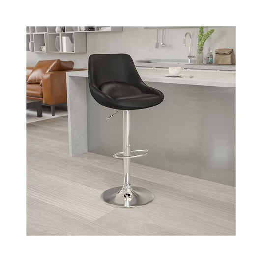 Contemporary Black Vinyl Adjustable Height Barstool with Chrome Base