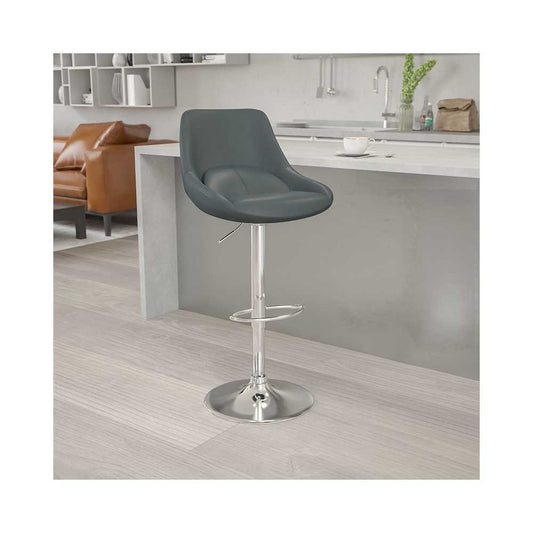 Contemporary Gray Vinyl Adjustable Height Barstool with Chrome Base