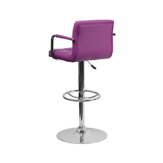 Contemporary Purple Quilted Vinyl Adjustable Height Barstool with Arms and Chrome Base