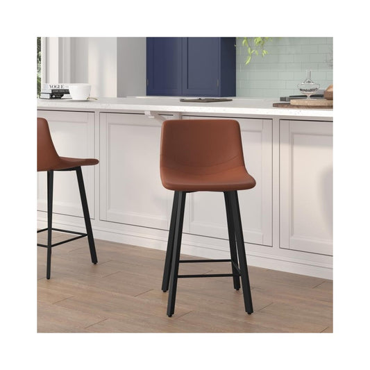 Flash Furniture Caleb 2PK 24" Cognac Leather Stools CH-212069-24-BR-GG