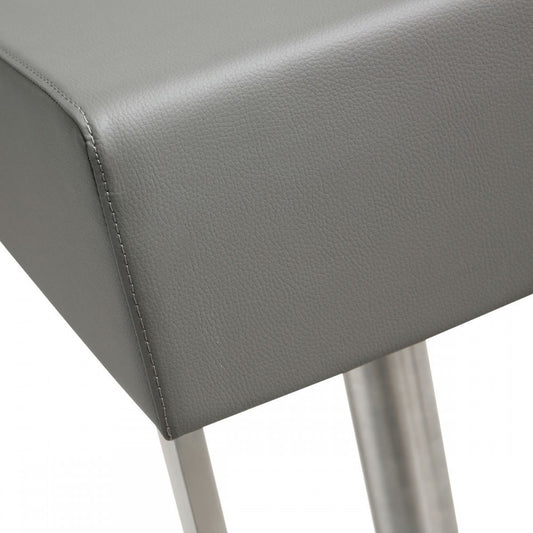 Contemporary Gray Vinyl Adjustable Height Barstool with Embellished Stitch Design and Chrome Base