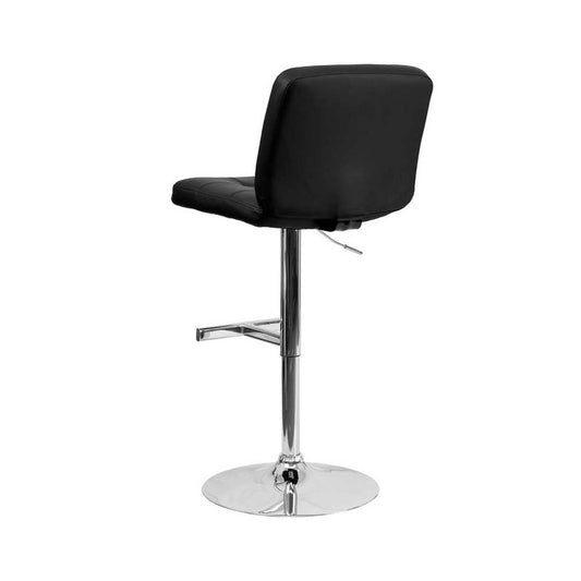 Contemporary Black Vinyl Adjustable Height Barstool with Square Tufted Back and Chrome Base