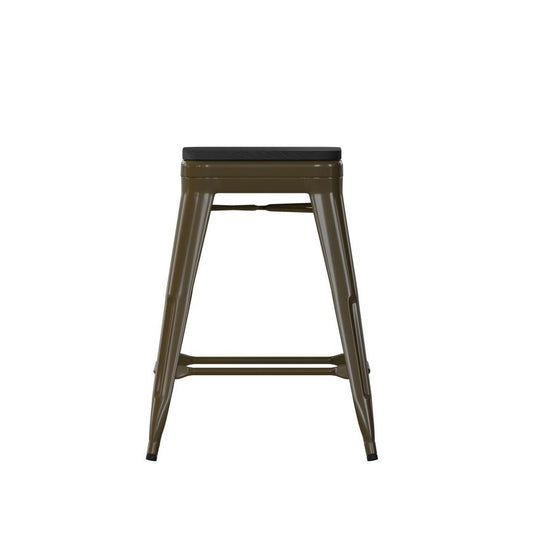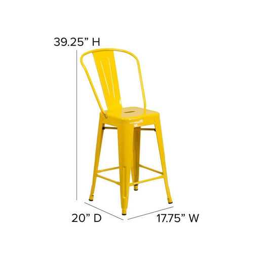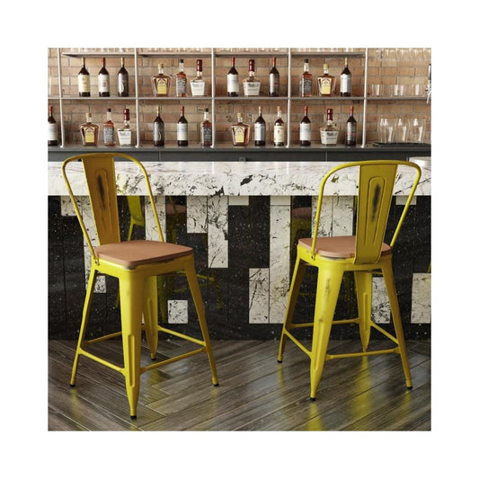 24" Yellow Metal Indoor-Outdoor Counter Height Stool-Teak Seat