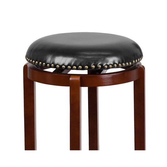 29'' High Backless Light Cherry Wood Barstool with Black LeatherSoft Swivel Seat