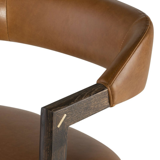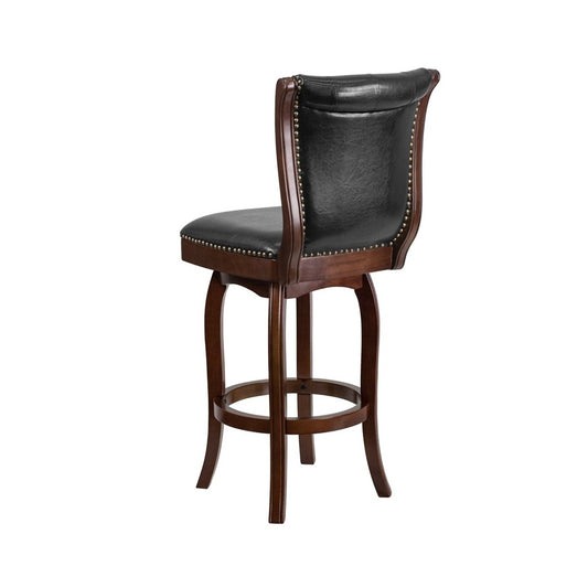 30'' High Cappuccino Wood Barstool with Button Tufted Back and Black LeatherSoft Swivel Seat