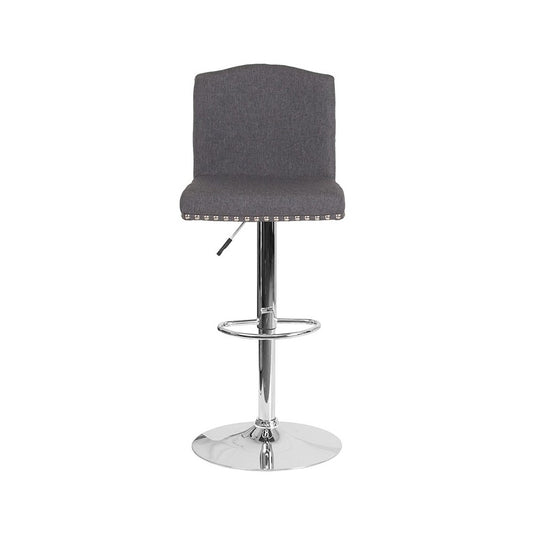 Bellagio Contemporary Adjustable Height Barstool with Accent Nail Trim in Dark Gray Fabric