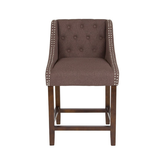 Carmel Series 24" High Transitional Tufted Walnut Counter Height Stool with Accent Nail Trim in Brown Fabric