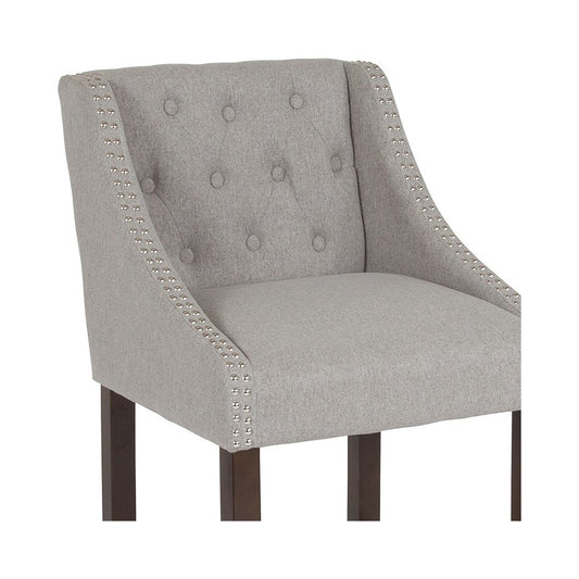Carmel Series 24" High Transitional Tufted Walnut Counter Height Stool with Accent Nail Trim in Light Gray Fabric