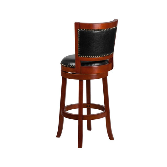30'' High Light Cherry Wood Barstool with Open Panel Back and Black LeatherSoft Swivel Seat