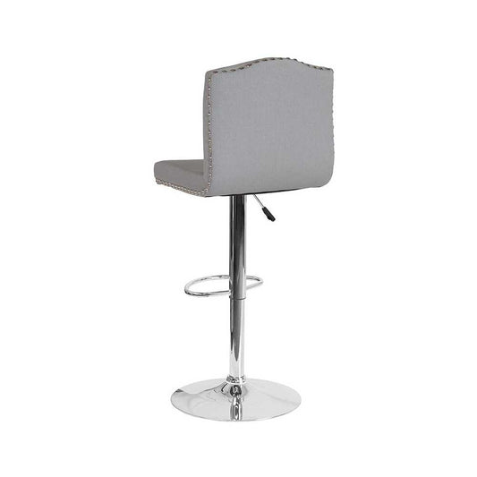 Bellagio Contemporary Adjustable Height Barstool with Accent Nail Trim in Light Gray Fabric