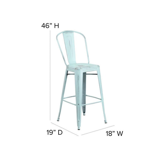 Sold outGreen-Bl Metal Stool-Gray Seat