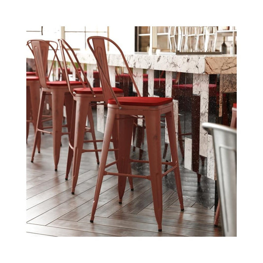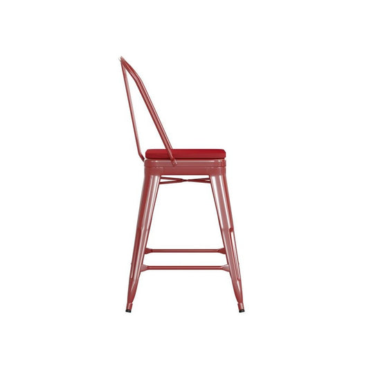 24" Red Metal Indoor-Outdoor Counter Height Stool-Red Seat
