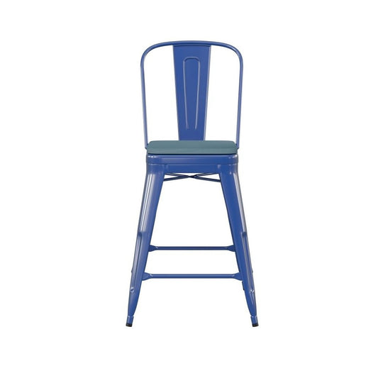 24" High Metal Counter-Height, Indoor Bar Stool in Teal - Stackable Set of 4