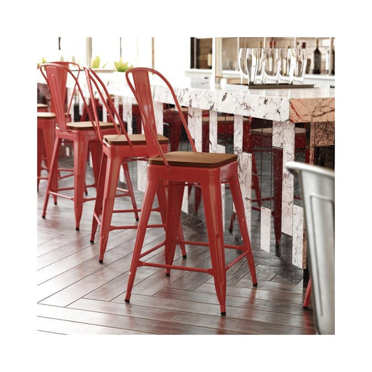 Sold out24" Red Stool-Teak Seat