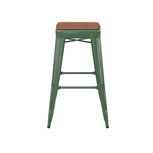 Kai Commercial Grade 30" Green Stool-Teak Seat