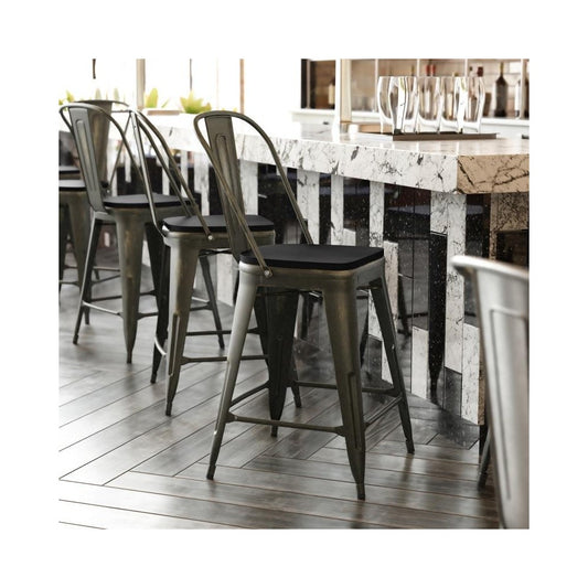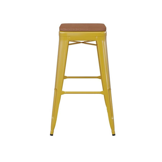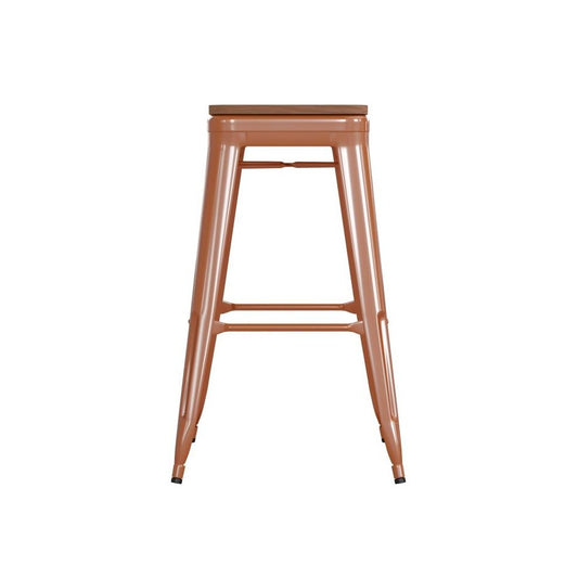 30" High Metal Indoor Bar Stool with Wood Seat in Black - Stackable Set of 4