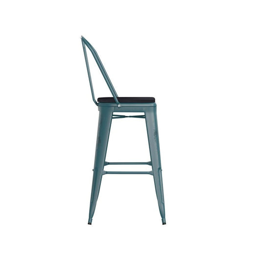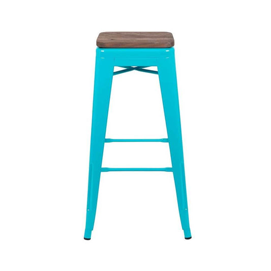 30" High Metal Indoor Bar Stool with Wood Seat in Teal - Stackable Set of 4