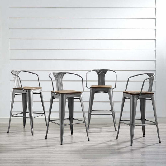 Promenade Bar Stool Set of 4, Gunmetal, EEI-3955-GME